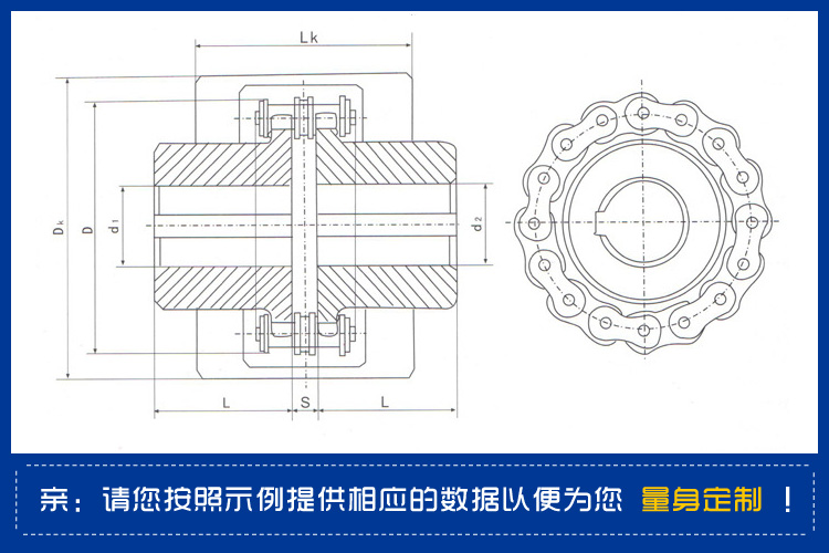 鏈條聯(lián)軸器是利用公用的鏈條,同時與兩個齒數(shù)相同的并列鏈輪嚙合,不同結(jié)構(gòu)型式主要區(qū)別是采用不同的鏈條,常見的有雙排滾子鏈、單排滾子鏈、齒形鏈、尼龍鏈等。雙排滾子鏈性能優(yōu)于其他結(jié)構(gòu)型式的聯(lián)軸器,為國內(nèi)外廣泛采用,我國亦已制訂為標準GB6069-2002 。