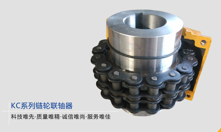 KC系列鏈輪聯(lián)軸器是利用公用的鏈條,將兩個帶有相同齒數(shù)的鏈輪齒的半聯(lián)軸器固定在一起,不同結(jié)構(gòu)型式的鏈條聯(lián)軸器主要區(qū)別是采用不同的鏈條,常見的有雙排滾子鏈聯(lián)軸器、單排滾子鏈聯(lián)軸器、齒形鏈聯(lián)軸器、尼龍鏈聯(lián)軸器等。雙排滾子鏈聯(lián)軸器 性能優(yōu)于其他結(jié)構(gòu)型式的聯(lián)軸器,為國內(nèi)外廣泛采用,我國亦已制訂為標(biāo)準(zhǔn)。