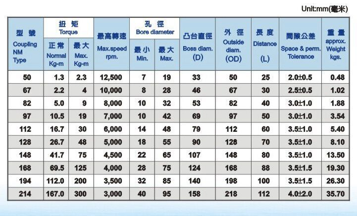 NM型梅花聯(lián)軸器特點: