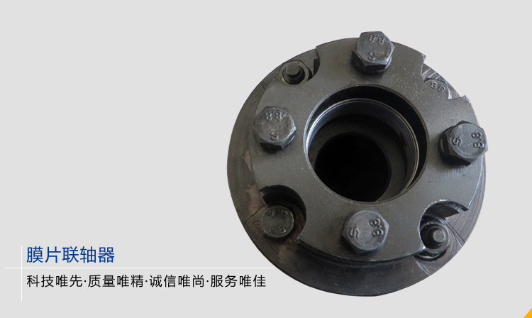 膜片聯(lián)軸器由幾組膜片(不銹鋼薄板)用螺栓交錯地與兩半聯(lián)軸器聯(lián)接,每組膜片由數(shù)片疊集而成,膜片分為連桿式和不同形狀的整片式。膜片聯(lián)軸器靠膜片的彈性變形來補(bǔ)償所聯(lián)兩軸的相對位移,是一種高性能的金屬強(qiáng)元件撓性聯(lián)軸器,不用潤油,結(jié)構(gòu)較緊湊,強(qiáng)度高,使用壽命長,無旋轉(zhuǎn)間隙,不受溫度和油污影響,具有耐酸、耐堿防腐蝕的特點(diǎn),適用于高溫、高速、有腐蝕介質(zhì)工況環(huán)境的軸系傳動。