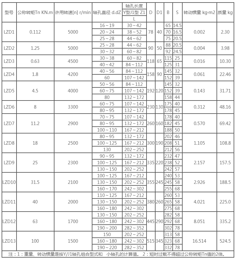 普通圓柱軸孔用LZ型,圓錐孔用LZD型。選型時望注意。