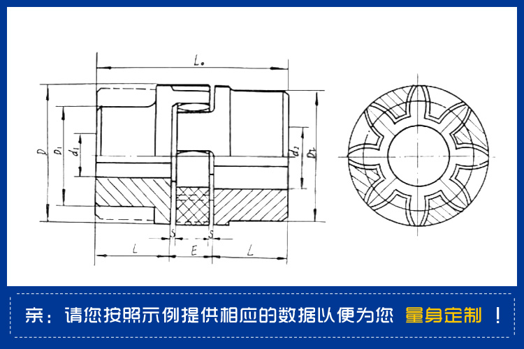4.適用于聯(lián)接兩同軸線,起動(dòng)頻繁,正反轉(zhuǎn)多變的傳動(dòng)軸系,傳動(dòng)轉(zhuǎn)矩為20-25000N.m,工作溫度為-35-80℃。